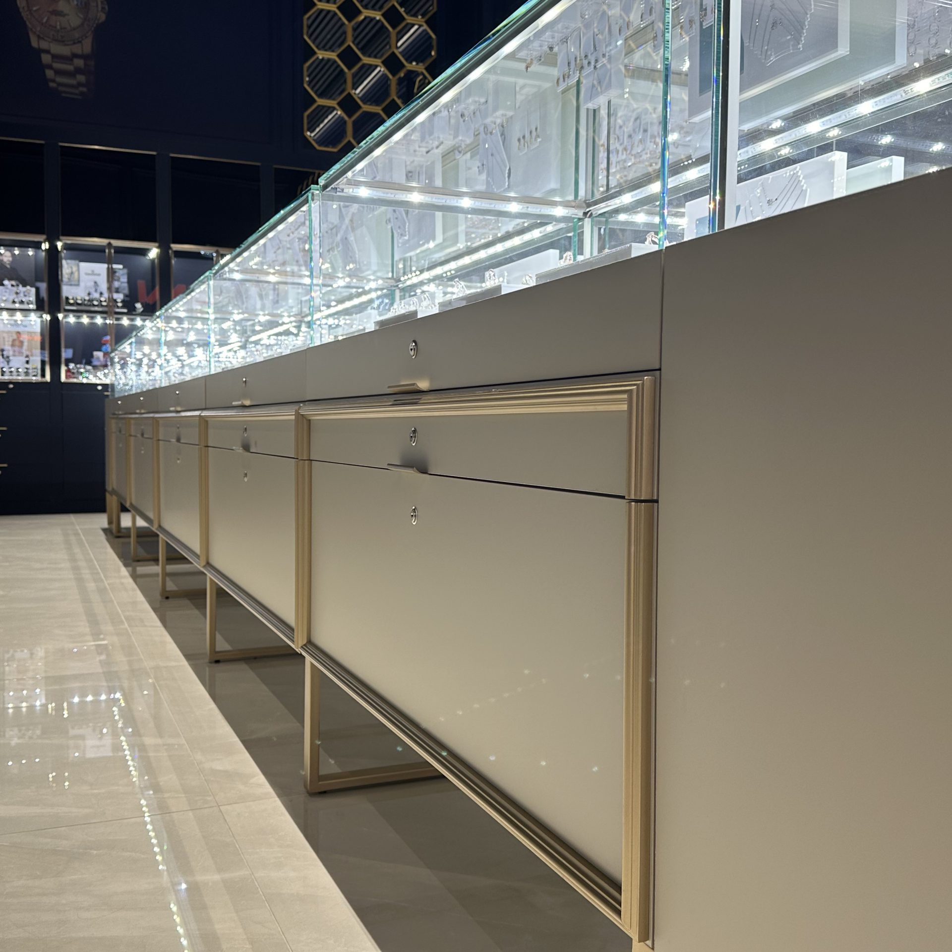 - Vitrine luminoase, dulapuri încăpătoare și sertare cu închidere securizată.