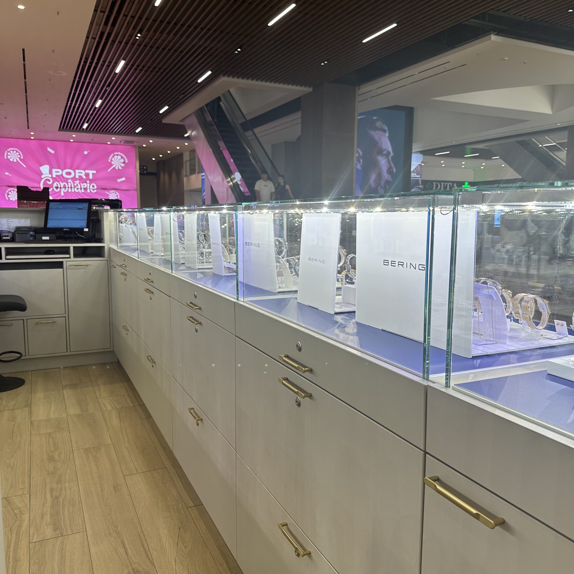 Mobilier comercial pentru magazinul de bijuterii „Paradis” din PORT MALL