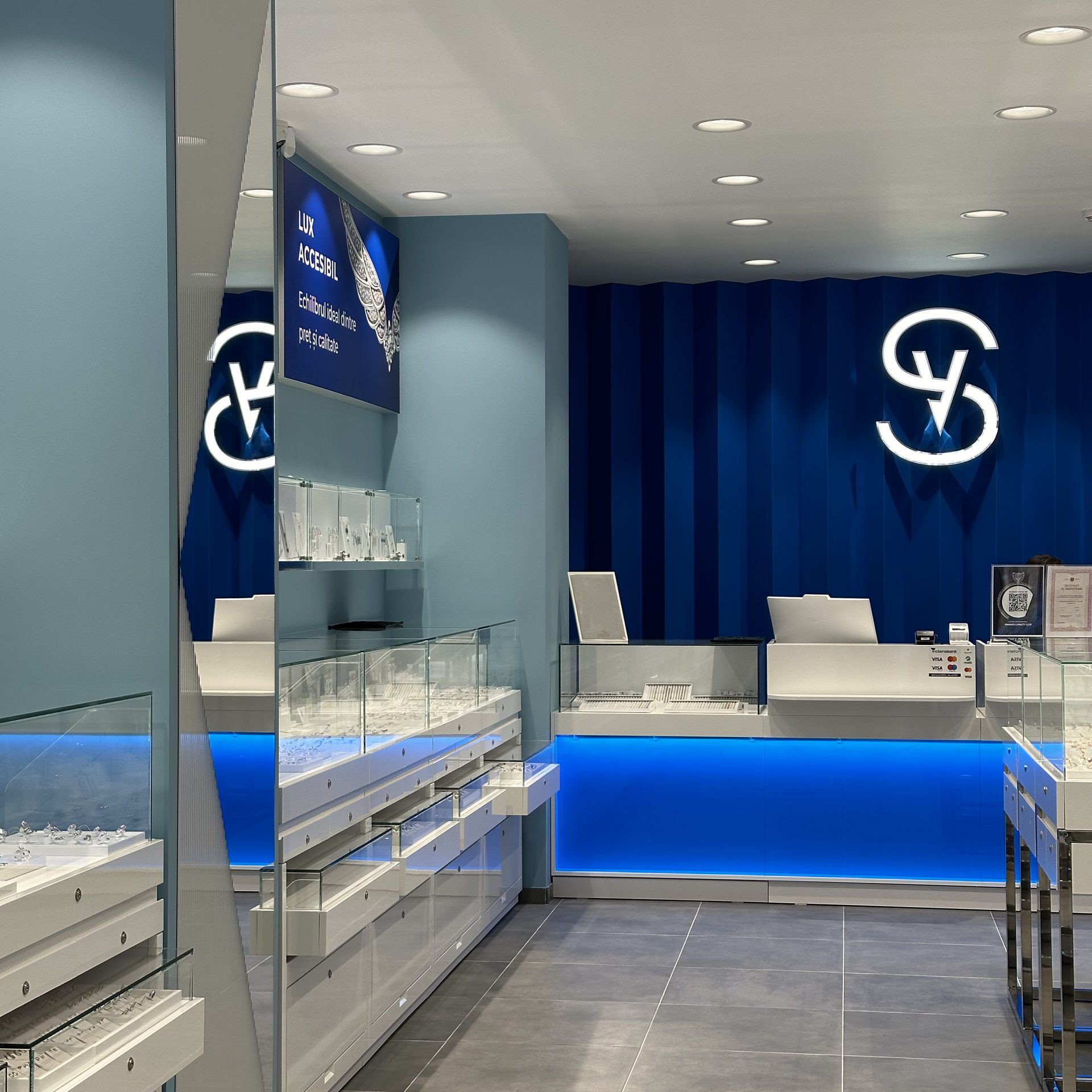 Mobilier comercial pentru magazinul de bijuterii „Sokolov”